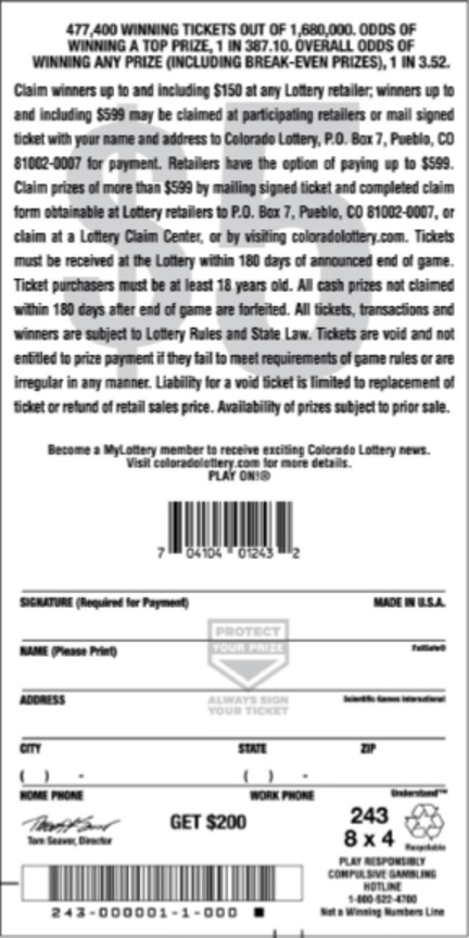 Overall Odds1 in 3.52* *Includes break-even prizes