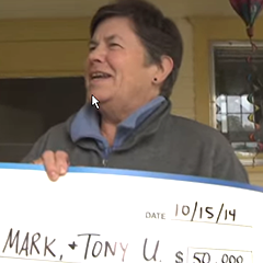 We Prize Surprised her at home with a check for $50,000! She couldn't wait to tell her husband and son that they won our 2nd Chance Drawing! CONGRATULATIONS!