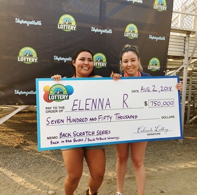 Elenna R. from Denver won $750,000 in a Second-Chance Drawing for the Scratch game Back in the Bucks / Back to Back Winnings. The Lottery’s Prize Surprise crew caught up with her and her cousin at the fairgrounds and presented her with a big check. She said the prize money will go toward tuition to cosmetology school, but her first order of business is to help her parents pay a few bills.