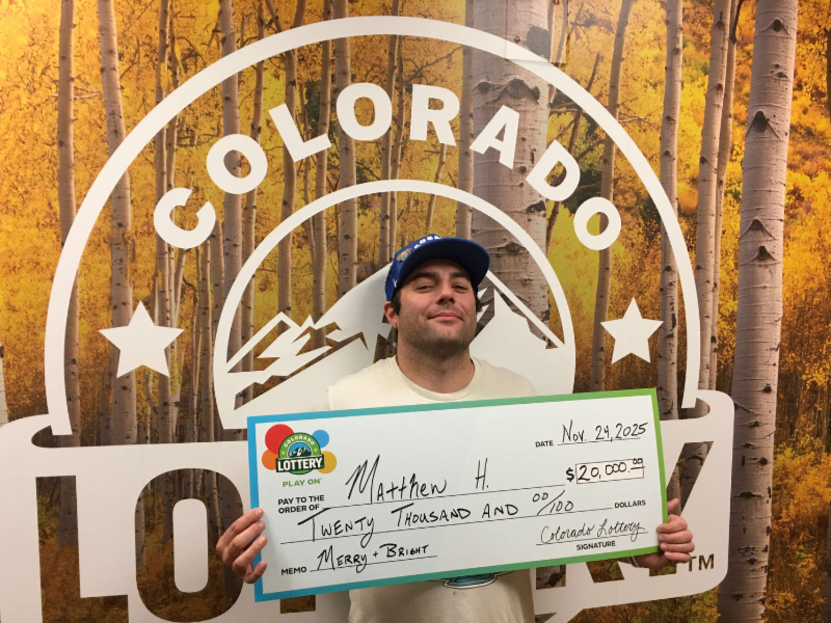 Matthew bought his Merry & Bright ticket at Loaf ‘N Jug, 4770 Drennan Rd., Colorado Springs, CO 80916, and won $20,000! He’s using the prize to buy concert tickets, including Widespread Panic and Daniel Donato. He described his reaction as joy, excitement, and shock!