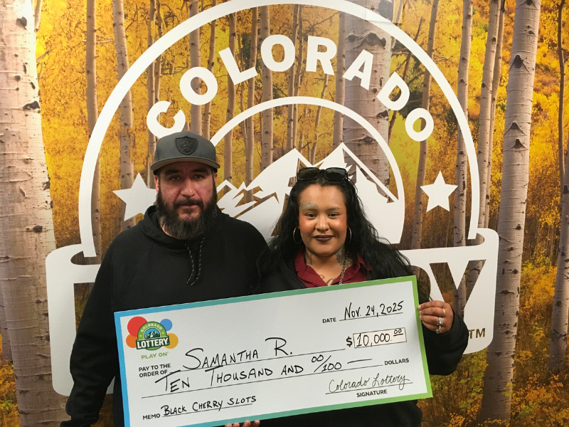 Samantha purchased her Black Cherry Slots ticket while grocery shopping at King Soopers, 1331 Speer Blvd., Denver, CO 80204, and later discovered the $10,000 win on the Colorado Lottery website! She plans to pay bills and buy Christmas gifts. She even asked her boyfriend to double-check the ticket to make sure she was seeing it right.