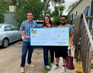 El Equipo Sorpresa del Premio de la Lotería de Colorado se encontró con Celin Z. en su casa en Henderson y lo sorprendió con un gran cheque por $250,000.