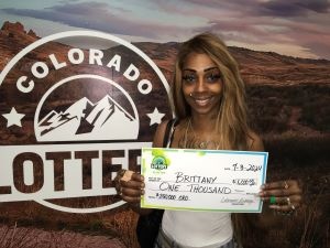 ¡Brittany R. de Aurora ganó $1,000 con su billete ORO Scratch! Brittany compró su boleto ganador en Circle K en 12796 E. Colfax Ave. en Aurora. Cuando vio que ganó, dijo: “Dios es bueno en todo momento”. Brittany trabaja en atención médica domiciliaria y dice que usará su pago para "¡Ir de compras!" ¡Felicidades, Brittany!