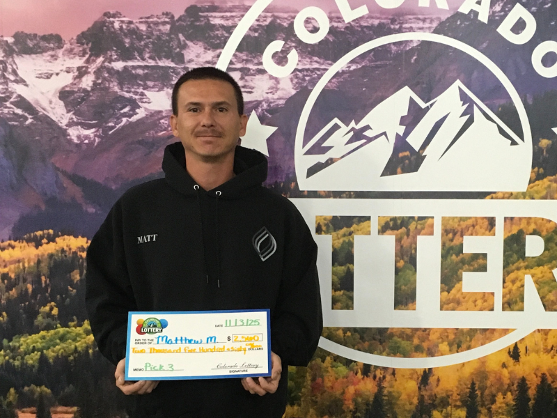 Matthew M., técnico en HVAC de Florence, ganó $660 y $1,900 con Pick 3 en un solo día. ¡Qué racha increíble! Fiel a sus números de siempre, se enteró de ambos premios en ColoradoLottery.com. Piensa destinar su mayor premio hasta la fecha a algo práctico: comprar llantas nuevas para su SUV.