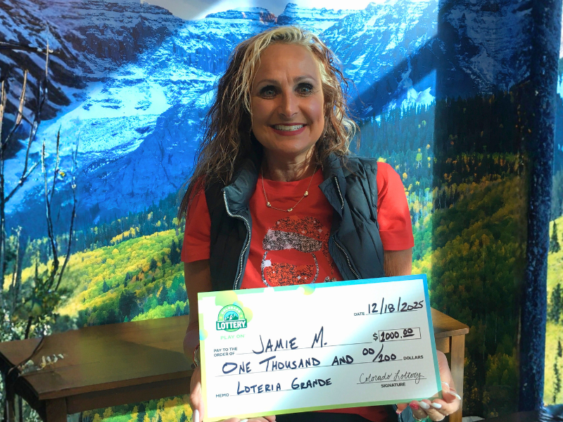 Jamie M., de Thornton, se emocionó al descubrir que ganó $1,000 con un boleto Scratch de Lotería Grande que compró en la tienda Murphy USA ubicada en 12820 Oneida St., Thornton, Colorado.