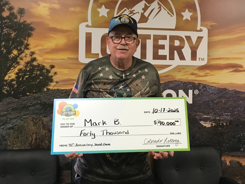 Mark B., de Longmont, jugador de toda la vida, acaba de ganar $40,000 en el Sorteo Extra del 40 Aniversario. Es su segundo premio en un sorteo de segunda oportunidad, 12 años después de haber ganado el primero.